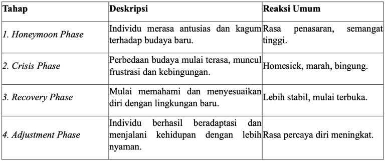 Culture Shock bukan hanya tentang perbedaan bahasa, tetapi juga perbedaan nilai, norma sosial, pola komunikasi, dan kebiasaan hidup.